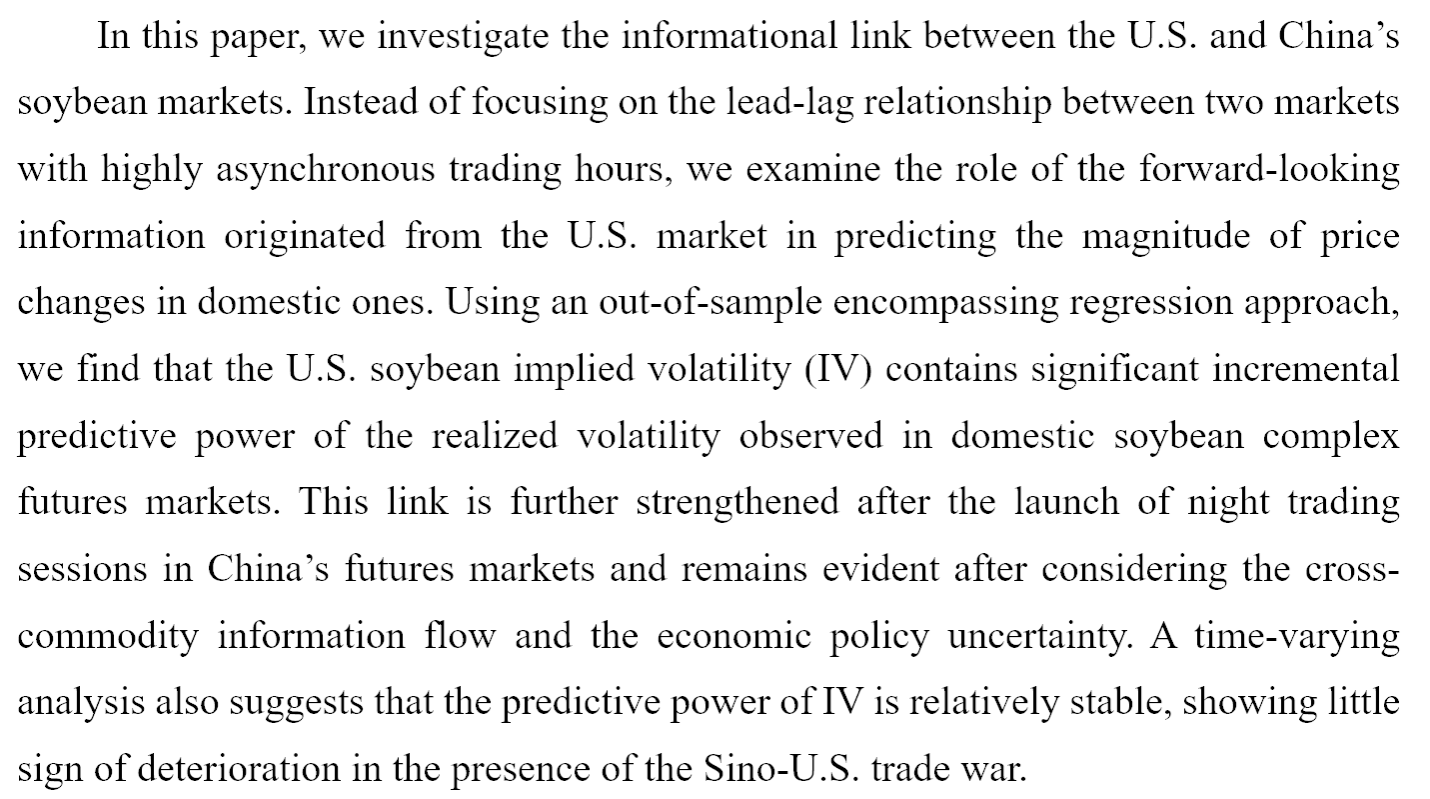 《国外隐含波动率在国内市场中的信息价值:基于中国大豆产业链的实证研究》