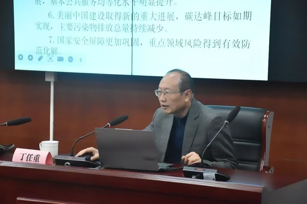 丁任重教授从三个文件、五大任务、六大原则、七大目标、十二个举措等方面宣讲了全会精神,并重点围绕如何看待“十五五”时期的国际形势、关于“十五五”时期发展的主线、关于“十五五”时期的历史方位、关于“以经济建设为中心”、“建设现代化产业体系,巩固壮大实体经济根基”战略任务、高质量发展是“十五五”时期发展的主题、关于“十五五”时期发展目标、统筹发展与安全等内容进行深度解析与系统阐述。他指出,党的二十届四中全会把“坚持统筹发展和安全”列为“十五五”时期经济社会发展必须遵循的重要原则之一,把“国家安全屏障更加巩固”列为主要目标之一,围绕统筹发展和安全作出一系列战略部署,这对于以新安全格局保障新发展格局、确保基本实现社会主义现代化取得决定性进展具有重大指导作用。