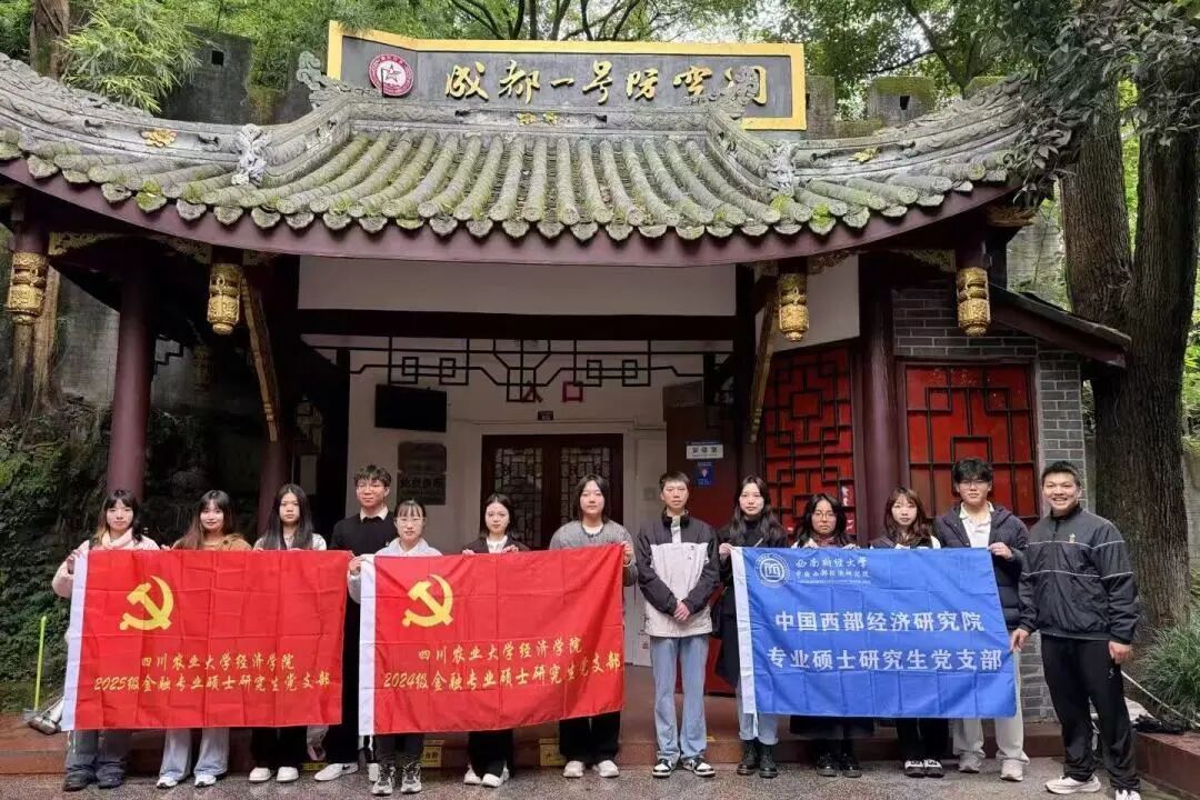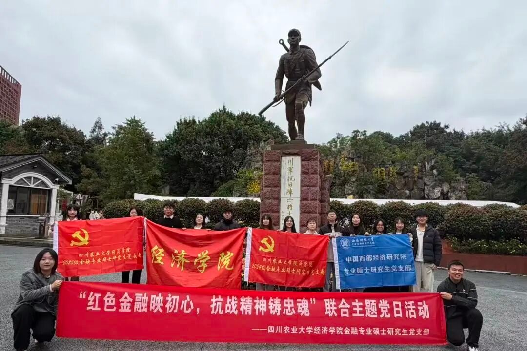专业硕士研究生党支部同四川农业大学经济学院金融专业硕士研究生党支部前往成都市人民公园联合开展了“红色金融映初心,抗战精神铸忠魂”沉浸式主题党日活动。两校研究生通过实地探访历史遗址、红色歌曲接唱、廉洁金融故事接龙等方式,在庄严仪式与生动实践中,完成了一场跨越时空的信仰对话。